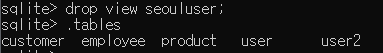 4번에서 seouluser 뷰가 drop view seouluser; 로 삭제된 것을 확인할 수 있다.