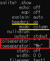 .mode column으로 설정하고 .header off는 컬럼명이 안 나온 것을 확인할 수