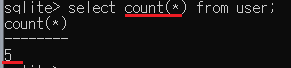 이 번에는 별표 * 를 사용해봅시다. count(*)을 사용했더니 테이블의 행 수인 5가 출력됐습니다.