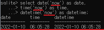 date함수, time함수, datetime함수는 오른쪽 형식으로 반환하고 julianday함수는 율리우스 날짜를 반환합니다.