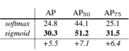 mask에서는 하나의 픽셀에 대해 각각 class별로 해당 클래스의 instance가 존재하는지 안하는지 sigmoid를 통해 binary로 계산