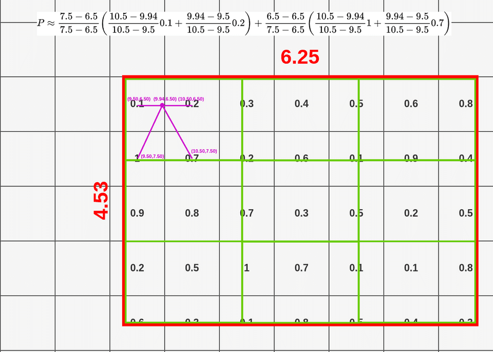 3) Bilinear interpolation을 적용하여 sampling point을 추정합니다.