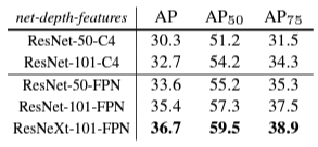 C4보다는 FPN이, 그리고 ResNet보다는 ResNeXt가